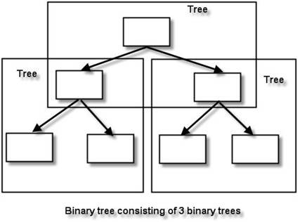 It is either empty, or consists of a root node which has its left and right trees, both of which are binary trees.