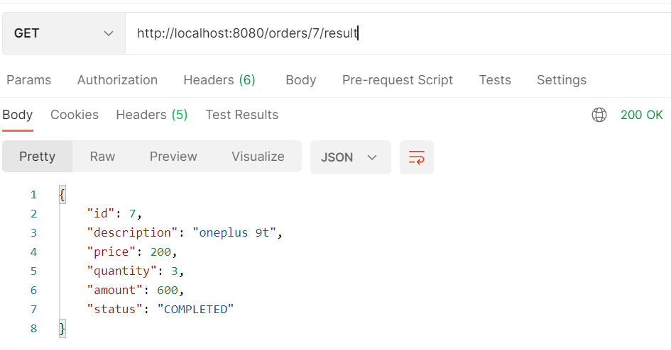 }Observe that the response body is of the type Order here. We no more need the GET /orders/{id} endpoint, as this one will only display the order details after the job has completed.