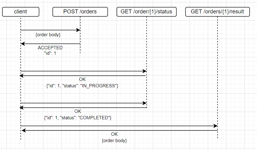 Once we have received an id back from the POST /orders request, we now expose an endpoint that can be polled to return the status of the background job: